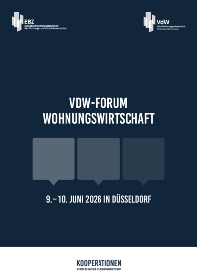 - Teilnahmemöglichkeit an Gremiensitzungen, der Mitgliederversammlung des VdW Rheinland Westfalen, einer öffentlichen Veranstaltung sowie einer begleitenden Fachausstellung